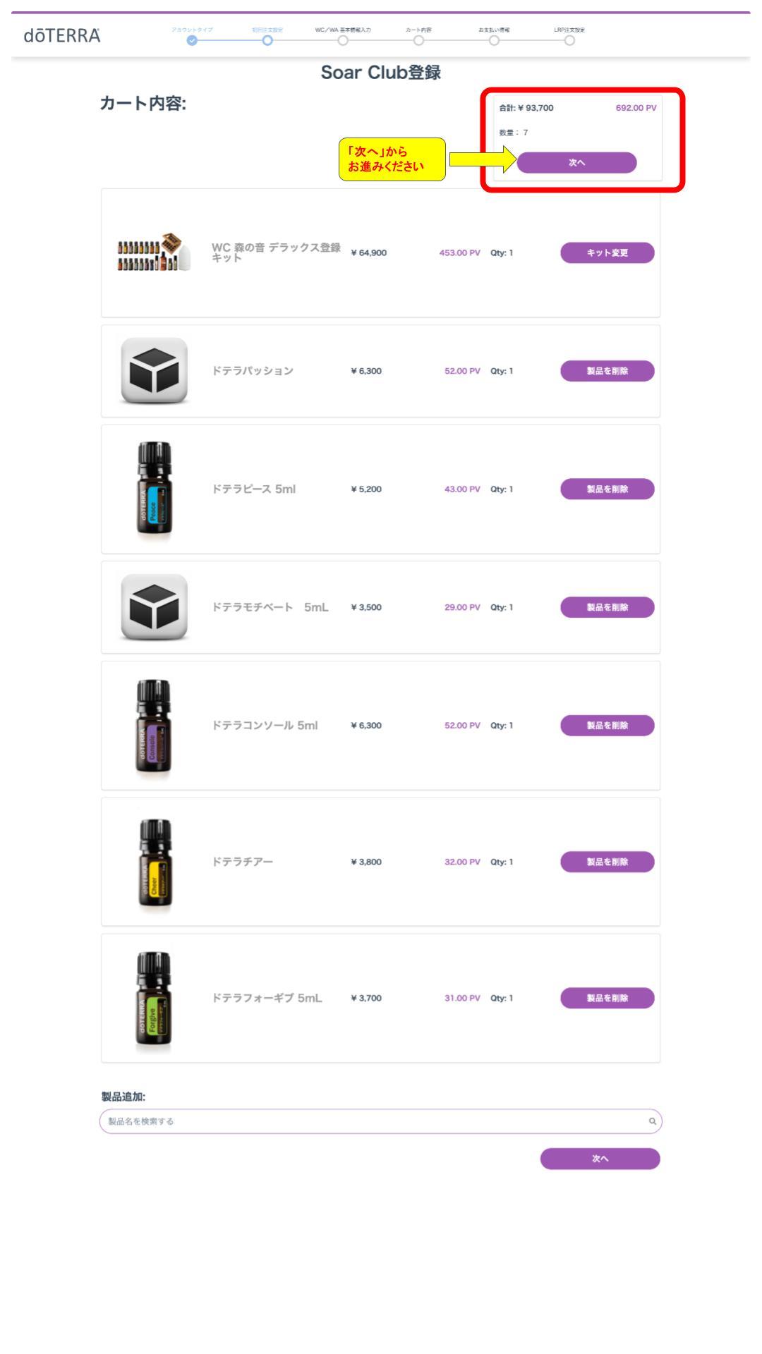 下部のボタンより進んでいただきますと、すでに今回のプログラムで必要なオイルやディフューザーがカートに入った状態になっています(93,700円)。